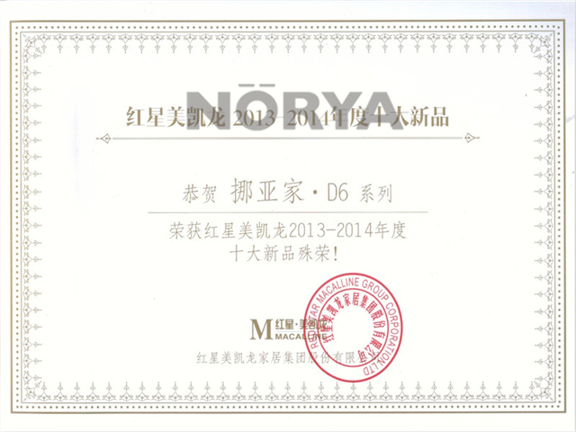 挪亚家荣获红星美凯龙新品殊荣