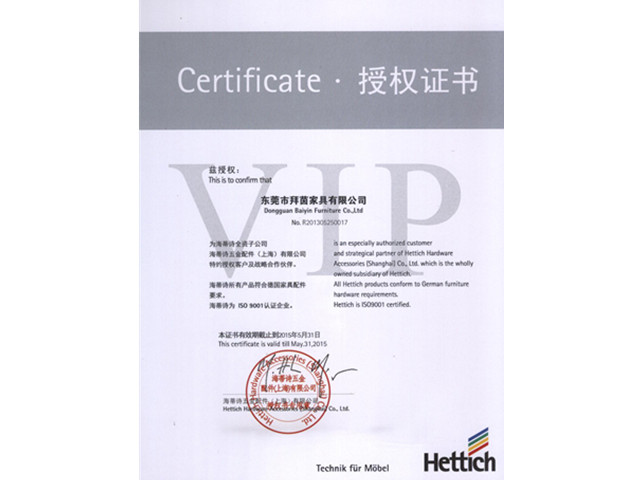 拜茵家具授权证书